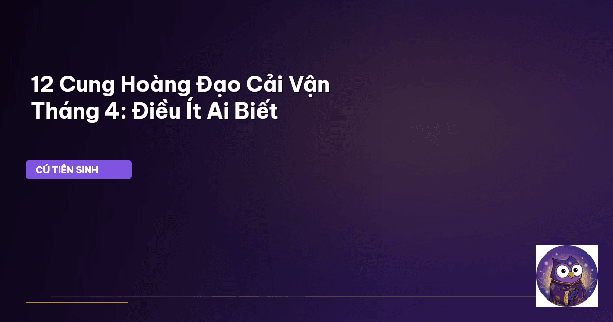 Bài viết này sẽ không chỉ đơn thuần là những lời dự đoán, mà là những chỉ dẫn sâu sắc từ góc nhìn tâm linh và phong thủy. Cú Tiên Sinh sẽ cùng bạn khám phá những bí quyết ít ai biết, những hành động cụ thể để mỗi cung Hoàng Đạo có thể tối ưu hóa vận may, thanh tẩy những u uế và thu hút vượng khí trong tháng Tư đầy hứa hẹn này. Hãy cùng lắng nghe tiếng vọng của các vì sao và chuẩn bị cho một hành trình cải vận đầy ý nghĩa.