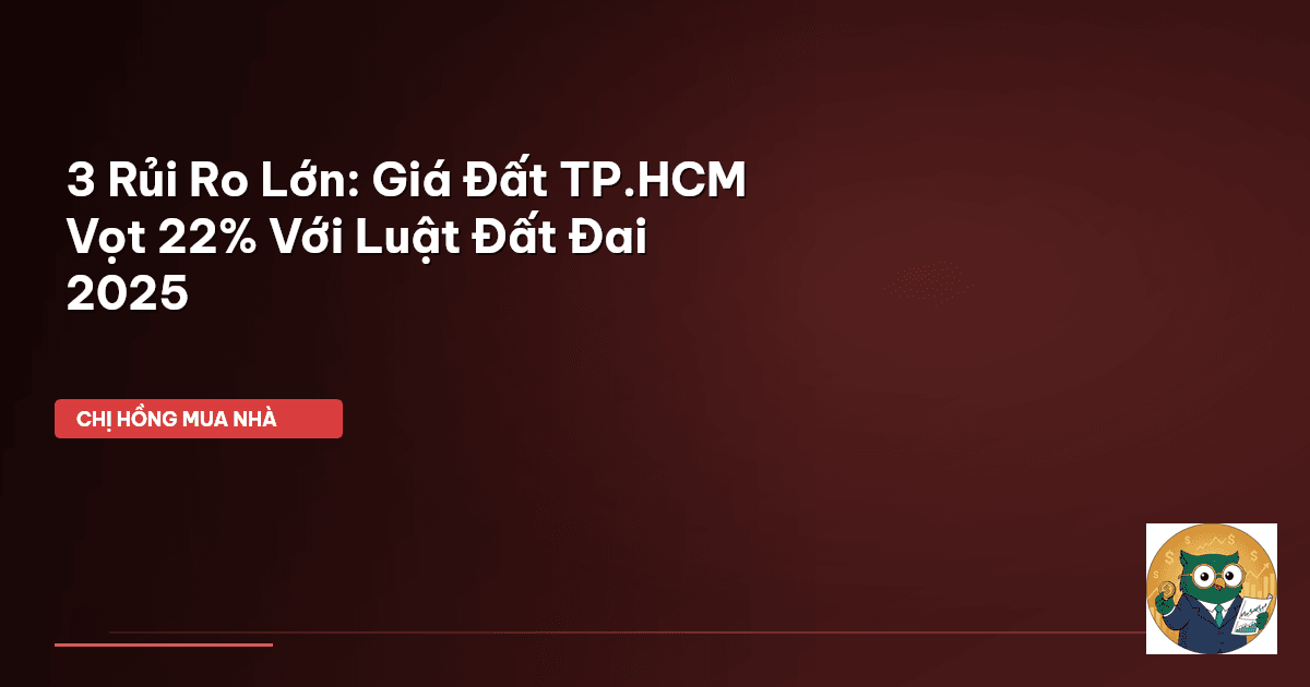 Chị Hồng biết là ai cũng lo lắng. Liệu túi tiền của mình có còn "chịu nhiệt" nổi không? Mua nhà bây giờ có an toàn không? Yên tâm nhé, hôm nay Chị Hồng sẽ "bóc tách" 3 rủi ro lớn nhất mà người mua nhà ở TP.HCM phải đối mặt, cùng với một "case thực tế" gây bất ngờ về việc giá đất tăng 22% đó!