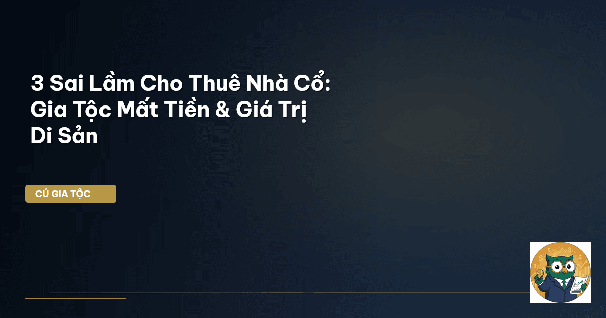 Bài viết này sẽ cùng quý vị Cú Thông Thái mổ xẻ 3 sai lầm phổ biến nhất khi cho thuê nhà cổ, đồng thời đưa ra những chiến lược bảo vệ tài sản gia tộc bền vững, đảm bảo rằng di sản của chúng ta không chỉ được bảo tồn mà còn thịnh vượng qua nhiều thế hệ. Đừng để "gà đẻ trứng vàng" của gia đình trở thành "trứng ung" chỉ vì những quyết định vội vàng, thiếu tính toán.