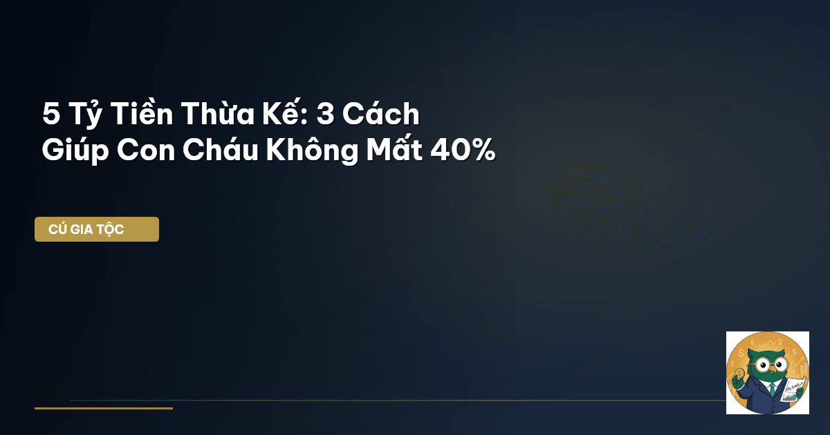 ⏱️ 15 phút đọc · 2832 từ Ông Bà Để Lại 5 Tỷ: Tại Sao Con Cháu Có Thể Mất Đến 40%? Ông Chú Vĩ Mô đã thấy nhiều gia đình Việt Nam chúng ta, sau bao năm lam lũ tích góp, để lại một cơ ngơi khổng lồ. Từ vài miếng đất vàng, căn nhà mặt phố, đến sổ tiết kiệm hàng chục, hàng trăm tỷ đồng. Nhưng rồi, khi thời điểm chuyển giao thế hệ đến, từ 5 tỷ đồng có thể dễ dàng thất thoát 40% giá trị, thậm chí nhiều hơn. Đây không phải là chuyện hiếm mà là nỗi đau chung của rất nhiều gia tộc, bởi một điều đơn giản: …