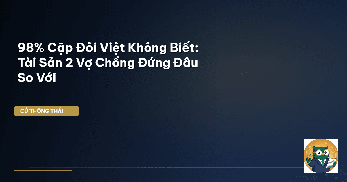 🎯 Key Takeaways1Xác định và định kỳ đánh giá Net Worth (tài sản ròng) chung của cả hai vợ chồng để có cái nhìn tổng thể về sức khỏe tài chính gia đình.2Đa dạng hóa danh mục tài sản ngoài bất động sản và vàng sang cổ phiếu, quỹ đầu tư, và các kênh tài chính khác để phân tán rủi ro và tối ưu hóa lợi nhuận.3Lên kế hoạch và thống nhất các mục tiêu tài chính rõ ràng (ngắn, trung, dài hạn) cùng với kế hoạch chi tiết để đạt được chúng, sử dụng ngân sách hợp lý.🦉 Cú Thông Thái khuyênTheo dõi thêm phân tích vĩ mô và công cụ quản lý tài sản tại vimo.cuthongthai.vn