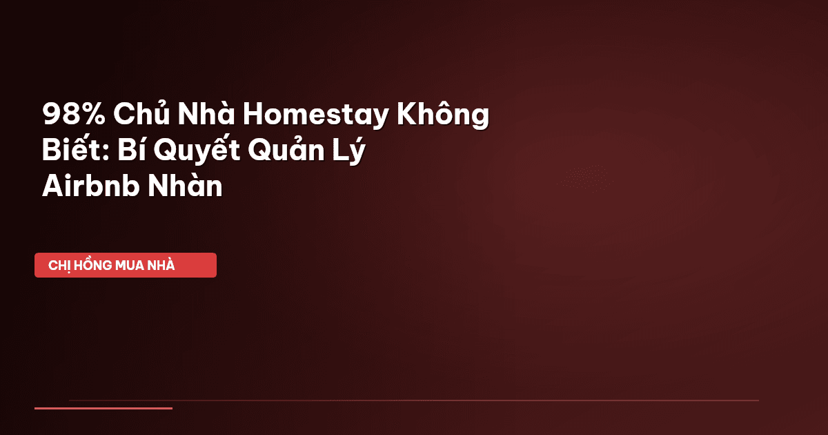 ⏱️ 14 phút đọc · 2759 từ Giới Thiệu: Mẹ Bỉm Bận Rộn Vẫn Có Thể Kiếm Tiền Tỷ Từ Homestay Chào cả nhà Cú Thông Thái! Chị Hồng BĐS đây. Hôm nay, chúng ta cùng ngồi lại tám chuyện về một chủ đề mà nhiều mẹ bỉm sữa, hay các anh chị có tài sản nhàn rỗi đang rất quan tâm: làm sao để biến căn nhà, căn phòng trống thành cỗ máy in tiền qua Airbnb homestay mà vẫn nhàn tênh, không phải 'đầu tắt mặt tối' như đi làm công sở? Thật ra, nhiều người cứ nghĩ cho thuê Airbnb thì dễ ợt, cứ đăng lên là có khách, có t…