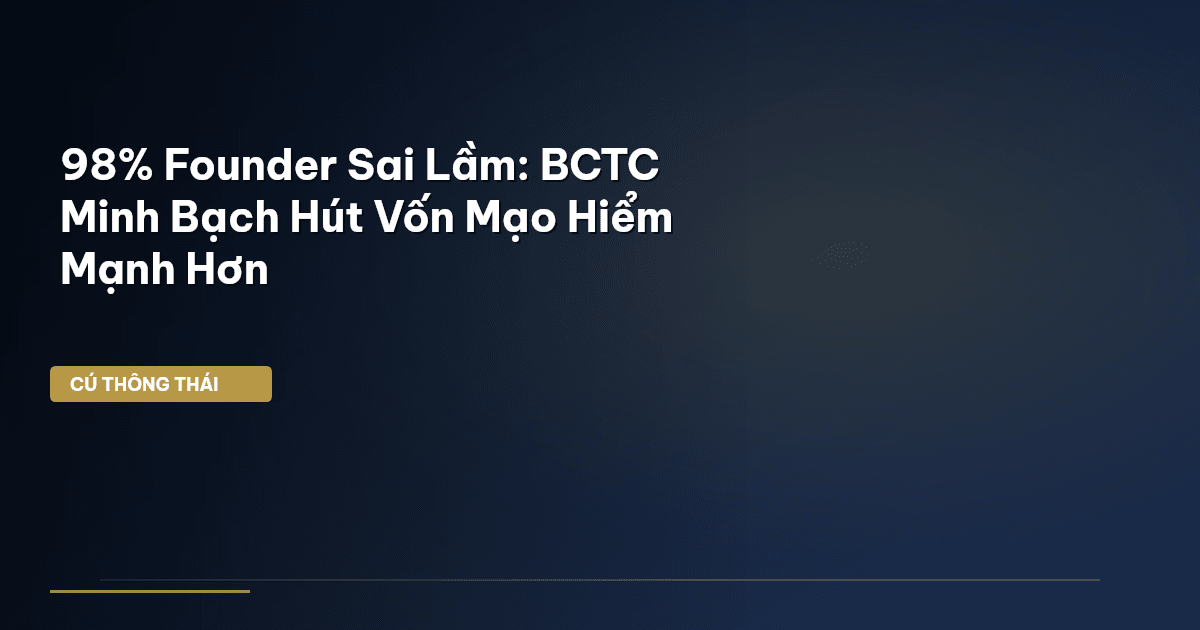 ⏱️ 12 phút đọc · 2333 từ Giới Thiệu: BCTC — 'Tấm Vé Vàng' Hay 'Màn Sương Mờ Ảo'? Mỗi startup, mỗi founder đều ấp ủ một giấc mơ, giấc mơ được 'chắp cánh' bởi dòng vốn mạo hiểm. Tiền về, cơ hội bứt phá. Nhưng rồi, khi đứng trước 'cá mập' nhà đầu tư, nhiều người lại loay hoay với cái gọi là Báo cáo tài chính (BCTC). Có founder thì nghĩ cứ số to là thắng. Có người lại tin chỉ cần 'làm đẹp' thật khéo. Nhưng liệu đó có phải là con đường đúng đắn? Thực tế phũ phàng: 98% founder chưa hiểu sâu sắc rằng, …