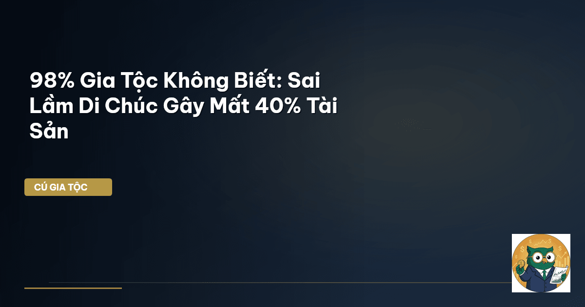 ⏱️ 16 phút đọc · 3051 từ Giới Thiệu: Di Sản Ẩn Chứa Nguy Cơ Mất Mát Khôn Lường Ông bà, cha mẹ chúng ta cả đời cần cù xây dựng sự nghiệp, chắt chiu từng đồng để tích lũy tài sản. Từ căn nhà mặt phố, lô đất vàng, cho đến doanh nghiệp gia đình đang ăn nên làm ra. Tất cả đều là mồ hôi, nước mắt và niềm tự hào về một di sản mong muốn truyền lại cho con cháu. Thế nhưng, ít ai biết rằng, ngay cả với một bản di chúc được cho là cẩn thận, tài sản đó vẫn có thể bị hao hụt đáng kể, thậm chí mất tới 40% giá…