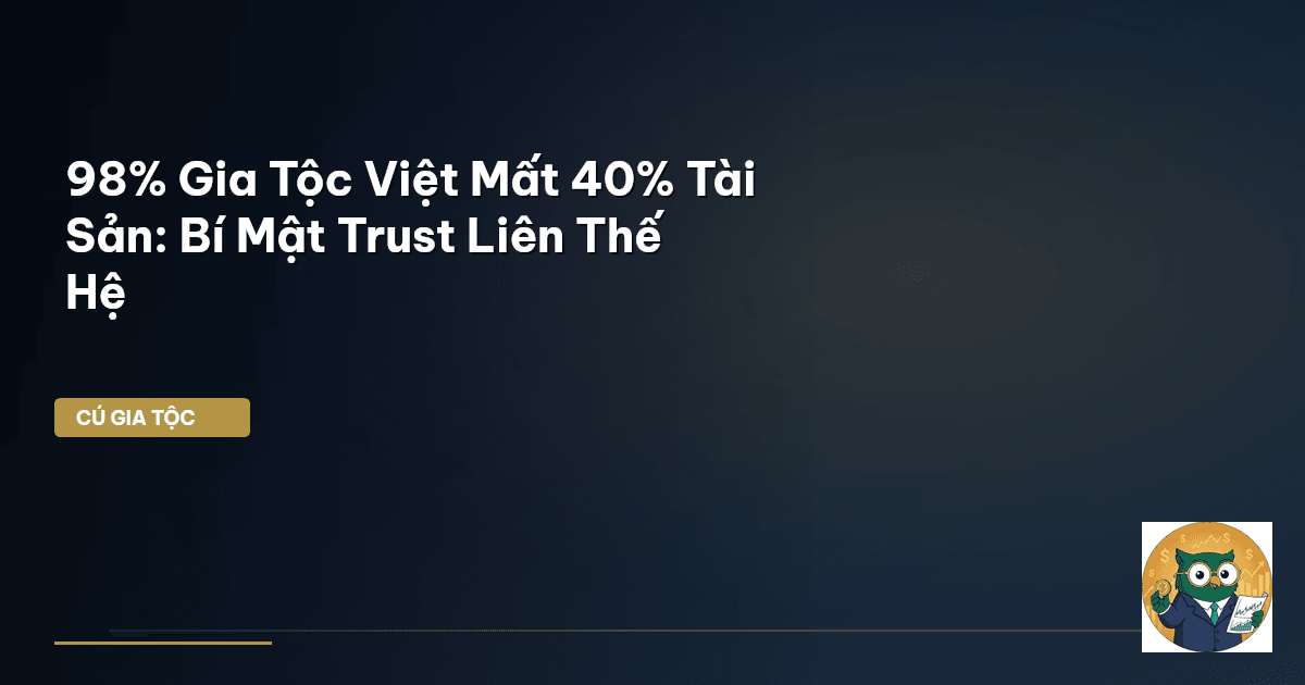 ⏱️ 15 phút đọc · 2802 từ Giới Thiệu: Ông Bà Để Lại 5 Tỷ, Con Cháu Mất 40% Vì KHÔNG Biết Trust Là Gì? Kính chào các Cú Thông Thái thế hệ mới, Ông Chú Vĩ Mô lại đây. Câu chuyện này không phải viễn tưởng, mà là thực tế chua chát đang diễn ra ở rất nhiều gia tộc Việt. Ông bà cả đời chắt chiu, gây dựng được khối tài sản hàng chục, thậm chí hàng trăm tỷ đồng. Đến khi chuyển giao cho con cháu, bỗng nhiên "bay hơi" 30%, 40%, có khi đến 50% giá trị. Lý do không phải vì con cháu phá của, mà vì KHÔNG BIẾT …