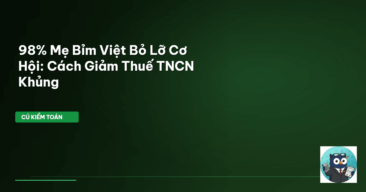 | 📌 Chủ đề | 98% Mẹ Bỉm Việt Bỏ Lỡ Cơ Hội: Cách Giảm Thuế TNCN Khủng |