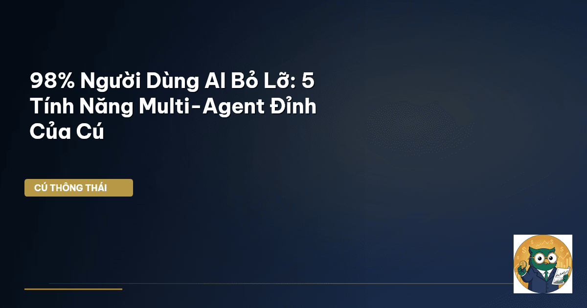 Trong thế giới tài chính, câu trả lời thường là vế sau. Cứ như mình đi xem xiếc, thấy ảo thuật gia hô biến cái rẹt, chứ đâu biết sau cánh gà là cả ê-kíp quần quật chuẩn bị. Phần lớn chúng ta chỉ đang dùng một con AI đơn lẻ, hỏi gì đáp nấy. Nhưng sức mạnh thật sự của trí tuệ nhân tạo, đặc biệt trong đầu tư, lại nằm ở mô hình Multi-Agent AI – một đội ngũ các AI chuyên biệt cùng phối hợp ăn ý. Nghe có vẻ phức tạp, nhưng lại đơn giản cực kỳ khi Cú Thông Thái triển khai. Dưới đây là 5 tính năng đỉnh cao của Cú AI multi-agent mà 98% nhà đầu tư có thể đang bỏ lỡ.