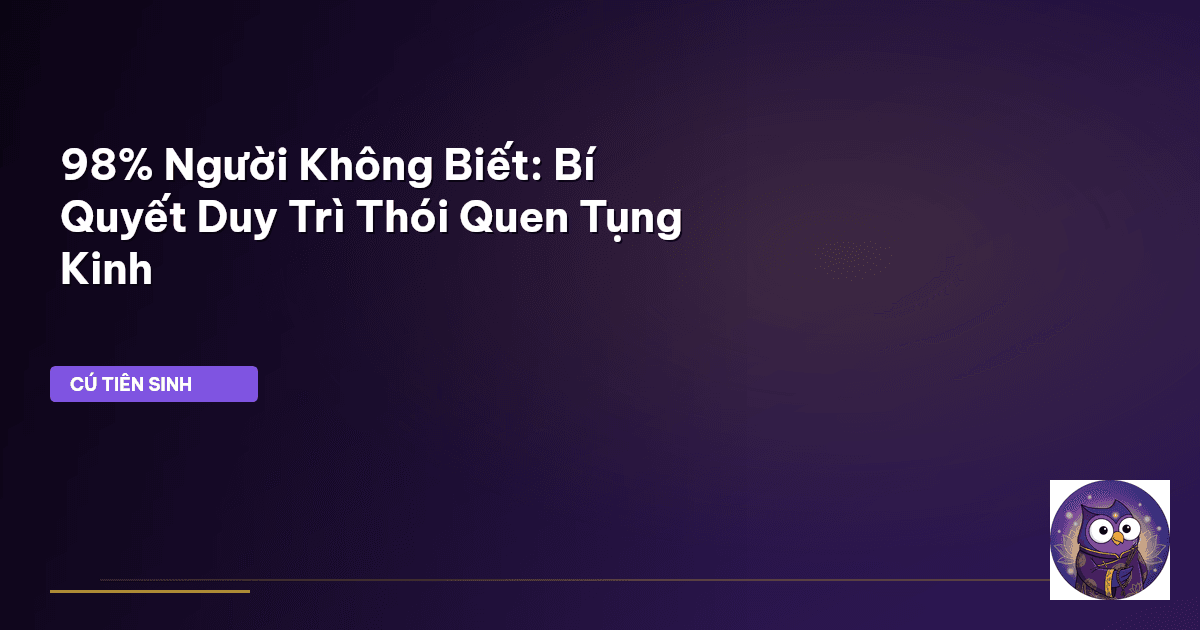 ⏱️ 11 phút đọc · 2166 từ Giới Thiệu Trong guồng quay hối hả của cuộc sống hiện đại, nhiều người con Phật tìm về nẻo thiện, mong muốn gieo hạt giống từ bi qua việc tụng kinh. Thế nhưng, không phải ai cũng có duyên đến chùa thường xuyên, và tụng kinh online đã trở thành một pháp môn phổ biến, mang đến sự tiện lợi khó ngờ. Cú Tiên Sinh nhận thấy, tuy xu hướng này nở rộ, nhưng việc duy trì một thói quen tụng kinh online đều đặn mỗi ngày lại là một thử thách lớn, đòi hỏi sự kiên trì và một phương phá…