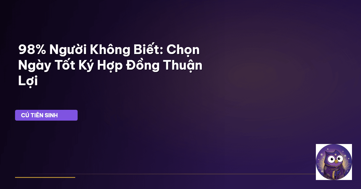⏱️ 12 phút đọc · 2367 từ Giới Thiệu: Bí Mật Thời Khắc Định Đoạt Vận Mệnh Người xưa thường dạy: "Thiên thời, địa lợi, nhân hòa". Ba yếu tố này, nếu hợp lại, sẽ tạo nên thành công viên mãn cho mọi việc đại sự. Trong đó, Thiên thời , tức là thời điểm, giữ một vai trò vô cùng trọng yếu, đặc biệt là khi ta đứng trước ngưỡng cửa của những cam kết lớn lao như ký kết hợp đồng. Phải chăng việc chọn ngày lành tháng tốt chỉ là một hủ tục cũ kỹ? Cú Tiên Sinh cho rằng, đó không đơn thuần là sự mê tín mà là s…