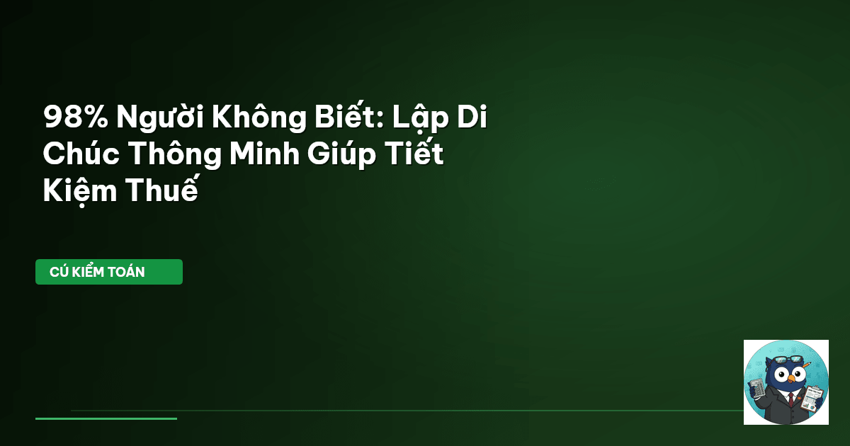 ⏱️ 13 phút đọc · 2518 từ Giới Thiệu: Di Chúc Không Chỉ Là Giấy Tờ, Đó Là Chiến Lược Tài Chính Nhiều người coi di chúc đơn thuần là một bản liệt kê tài sản, nhưng Cú Kiểm Toán khẳng định: đây là một công cụ tài chính mạnh mẽ. Lập di chúc đúng cách không chỉ thể hiện ý chí của người để lại tài sản mà còn là chìa khóa để tối ưu hóa tài sản, giảm thiểu gánh nặng thuế cho người thừa kế. Tại Việt Nam, chủ đề này thường bị bỏ qua, dẫn đến những phát sinh không đáng có. Chúng ta nói về tài sản tích cóp …