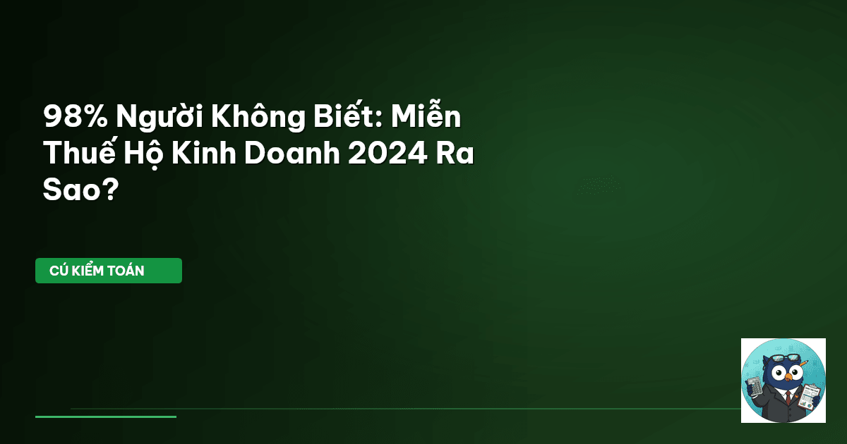 ⏱️ 11 phút đọc · 2096 từ Giới Thiệu: Đừng Để Thuế Làm Khó Hộ Kinh Doanh! Mỗi năm, các chính sách thuế luôn là chủ đề nóng bỏng, đặc biệt với hàng triệu hộ kinh doanh cá thể. Năm 2024 này cũng không ngoại lệ. Nhiều người vẫn đang băn khoăn: liệu mình có được miễn thuế không? Ngưỡng doanh thu 100 triệu đồng đó, tính sao cho đúng? Cú Kiểm Toán nhận thấy, sự nhầm lẫn về các quy định thuế có thể dẫn đến những khoản phạt không đáng có. Mục tiêu của chúng tôi hôm nay là soi kỹ từng con số, từng điều lu…