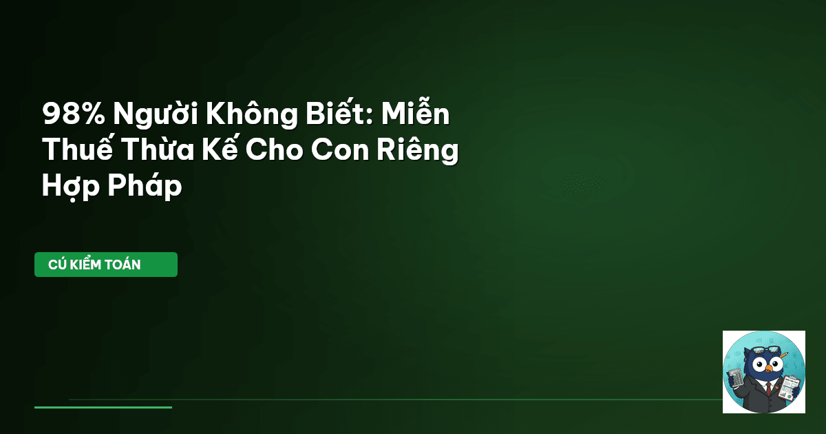 ⏱️ 11 phút đọc · 2020 từ Giới Thiệu: Đừng Để Con Riêng Thiệt Thòi Vì Thiếu Hiểu Biết Thuế Gia đình hiện đại ngày càng đa dạng. Không ít trường hợp cha dượng, mẹ kế muốn để lại tài sản cho con riêng của vợ hoặc chồng. Tấm lòng là một chuyện, thủ tục pháp lý và nghĩa vụ thuế lại là chuyện khác. Nhiều người lầm tưởng con riêng không được hưởng quyền lợi như con ruột, hoặc phải chịu mức thuế suất cao ngất ngưởng. Cú Kiểm Toán sẽ soi kỹ để bạn thấy, việc này không hề phức tạp, miễn là hiểu rõ quy địn…