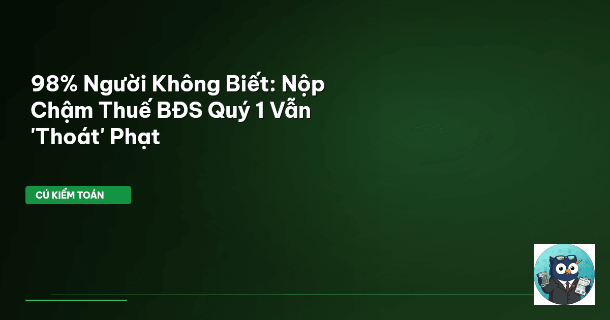 ⏱️ 11 phút đọc · 2054 từ Giới Thiệu: Đừng Để Nỗi Lo Nộp Chậm 'Đánh Gục' Dòng Tiền Của Bạn Kính chào quý vị, đây là Cú Kiểm Toán. Hôm nay, chúng ta cùng 'soi' một vấn đề 'nóng bỏng' mà nhiều người nộp thuế bất động sản (BĐS) đang băn khoăn: liệu nộp chậm thuế BĐS quý 1 có bị phạt không? Trong bối cảnh kinh tế có nhiều biến động, nơi chi phí sinh hoạt vẫn là một gánh nặng thường trực (ví dụ, giá xăng RON 95 hiện ở mức 23.540 VND/lít theo cập nhật ngày 15/04/2026 từ pvoil-scraper), việc tối ưu hóa …