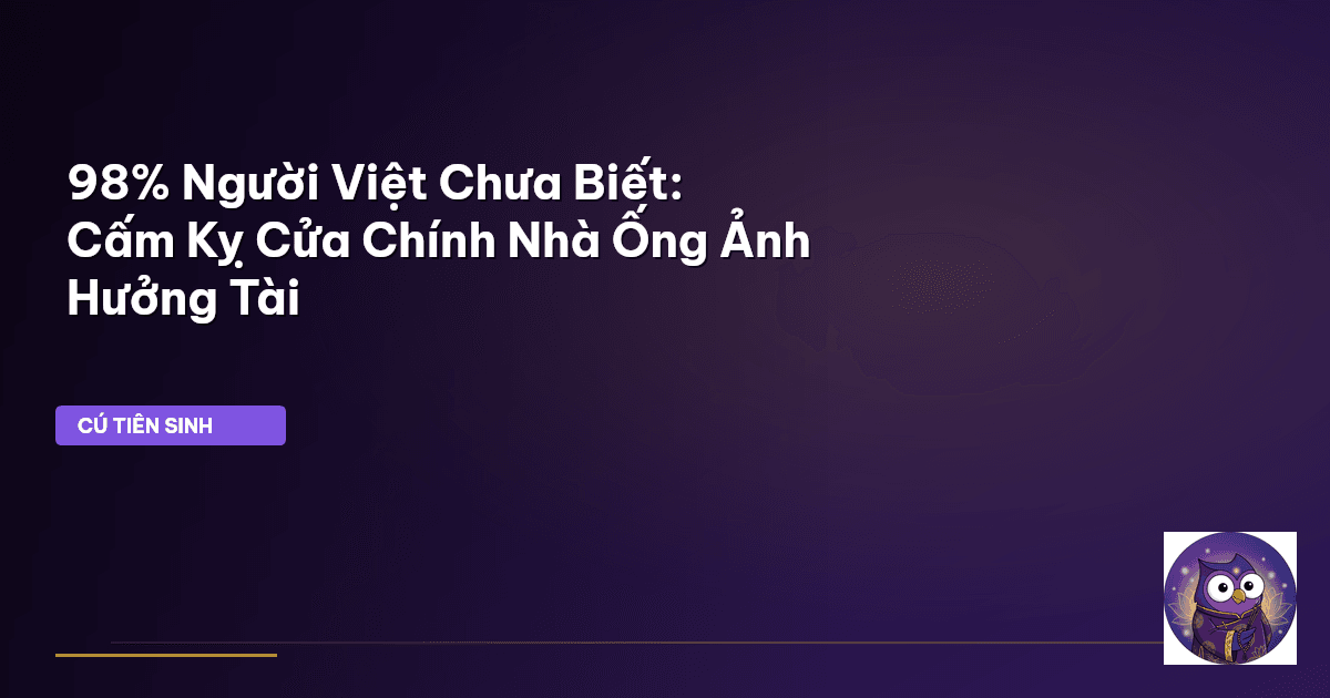 ⏱️ 14 phút đọc · 2626 từ Giới Thiệu: Cánh Cửa — Khẩu Khí Của Vận Mệnh Người xưa thường nói: cánh cửa chính là 'khẩu khí' của ngôi nhà, là nơi đón năng lượng vũ trụ, hay còn gọi là khí, vào không gian sống. Trong kiến trúc hiện đại, đặc biệt là với những căn nhà ống, nhà phố san sát tại các đô thị lớn, tầm quan trọng của cánh cửa chính lại càng trở nên lớn lao, bởi lẽ nó không chỉ đơn thuần là lối ra vào, mà còn là điểm khởi nguồn cho mọi dòng chảy năng lượng, quyết định phần lớn đến vận khí, tài…