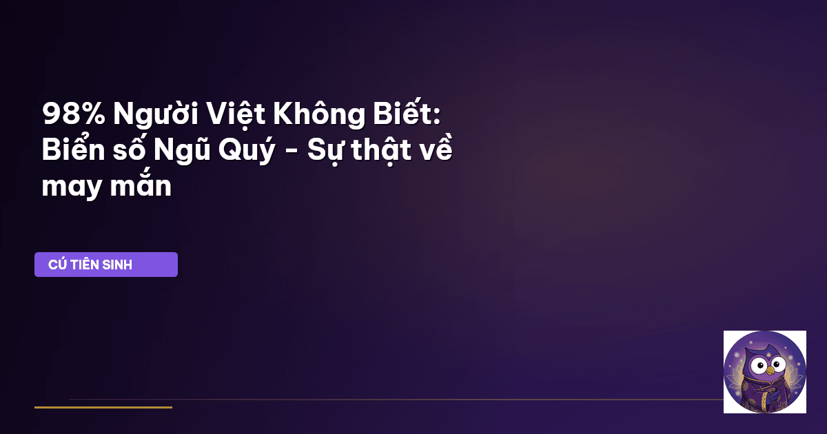 ⏱️ 11 phút đọc · 2180 từ Giới Thiệu: Vén Màn Niềm Tin Về Biển Số Ngũ Quý Kính thưa quý vị thiện hữu, Cú Tiên Sinh nhận thấy trong dòng chảy cuộc sống hằng ngày, có một niềm tin tâm linh đang dệt nên những câu chuyện vừa huyền bí vừa thiết thực: niềm tin vào biển số xe 'Ngũ Quý' . Tại dải đất hình chữ S này, một chiếc xe mang biển số với năm con số giống hệt nhau – như 888.88 hay 999.99 – không chỉ là phương tiện di chuyển, mà còn được xem là một vật phẩm mang lại phước lành, tài lộc dồi dào và s…