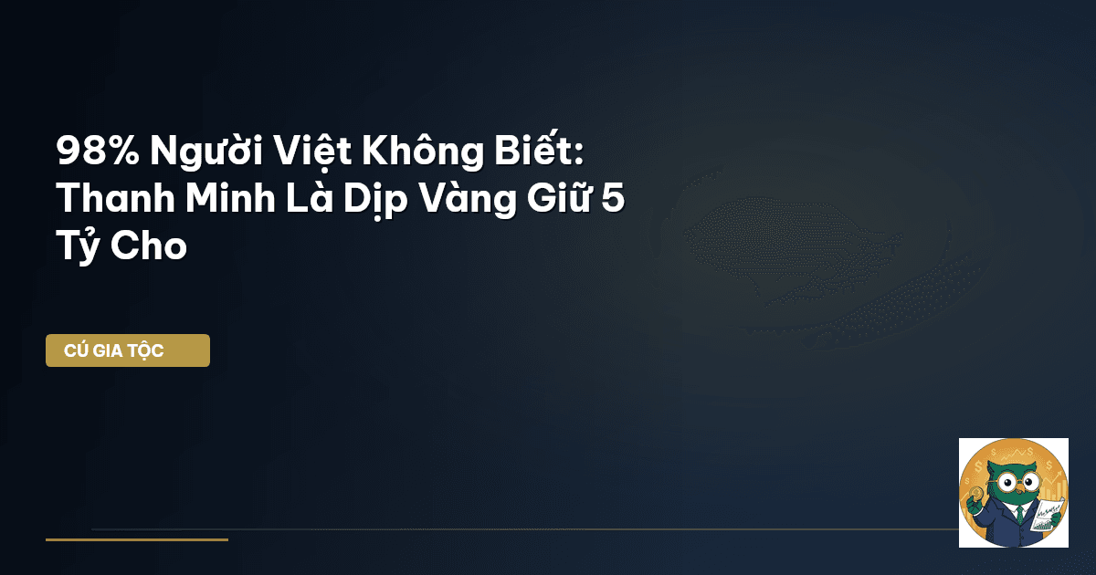 ⏱️ 15 phút đọc · 2836 từ Thanh Minh: Hơn Cả Tưởng Nhớ – Dịp Vàng Giữ 5 Tỷ Cho Con Cháu Mỗi độ Thanh Minh về, người Việt ta lại tề tựu bên nhau, cùng sửa sang mộ phần, thắp nén hương thơm tưởng nhớ ông bà tổ tiên. Đây là nét đẹp văn hóa, là sợi dây vô hình gắn kết các thế hệ. Thế nhưng, ít ai nghĩ rằng, chính trong khoảnh khắc thiêng liêng này, chúng ta đang bỏ l lỡ một cơ hội vàng để "kể chuyện gia phả tài chính" – một câu chuyện quan trọng không kém gì gia phả huyết thống, nhằm bảo vệ khối tài …