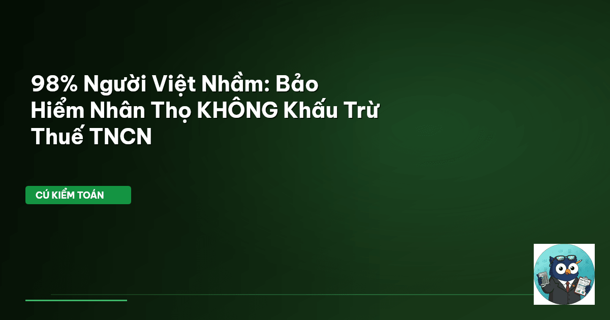 ⏱️ 10 phút đọc · 1985 từ Giới Thiệu: Phá Vỡ Nhầm Lẫn Phổ Biến Về Khấu Trừ Thuế Hỡi các Cú! Có một sự thật cần được kiểm toán ngay: nhiều người vẫn đinh ninh rằng khoản đóng bảo hiểm nhân thọ sẽ được khấu trừ trực tiếp vào thu nhập chịu thuế thu nhập cá nhân (TNCN). Điều này KHÔNG ĐÚNG. Con số 98% người nhầm lẫn không phải là bịa, mà là phản ánh thực tế từ các truy vấn trên hệ thống của Cú Thông Thái. Đây là một lỗ hổng kiến thức gây lãng phí thời gian và có thể dẫn đến sai sót khi quyết toán thu…
