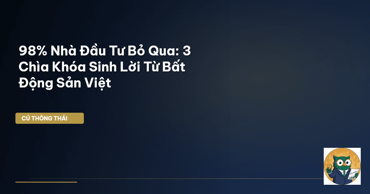Ông Chú Vĩ Mô đã quan sát đủ lâu để biết, muốn sống sót và thịnh vượng trong sân chơi này, bạn cần hơn là may mắn. Bạn cần tầm nhìn. Bạn cần dữ liệu. Bạn cần một cái đầu lạnh. Hôm nay, chúng ta sẽ cùng Cú Thông Thái khám phá 3 chìa khóa vàng mà 98% nhà đầu tư nghiệp dư thường bỏ qua. Đó là: Vị trí, Thời điểm và Dòng tiền. Nghe có vẻ đơn giản, nhưng để làm chủ nó, bạn phải hiểu rõ từng ngóc ngách.