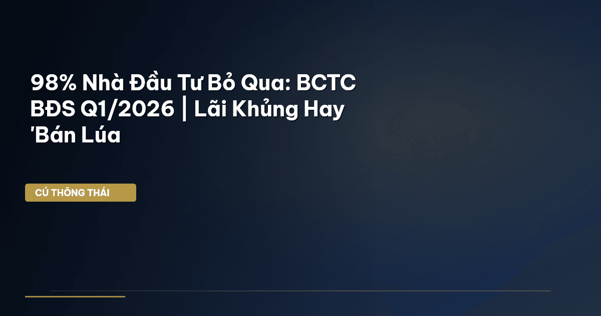 ⏱️ 9 phút đọc · 1631 từ Giới Thiệu: Màu Hồng Giả Tạo Từ Những Con Số Báo Cáo? Mỗi mùa công bố Báo cáo Tài chính (BCTC) là một lần thị trường sôi sục. Đặc biệt, BCTC Quý 1/2026 của nhóm doanh nghiệp bất động sản (BĐS) vừa qua đã thổi một luồng gió "phục hồi" vào tâm lý nhà đầu tư. Nhiều công ty báo lãi "khủng", thậm chí tăng trưởng gấp mấy lần so với cùng kỳ. Anh em F0, nhìn vào bảng điện xanh mướt, nghe tin tức hồ hởi, liệu có thấy ấm lòng? Nhưng ngài Cú thì khác. Ngài Cú, với cặp mắt tinh tường…