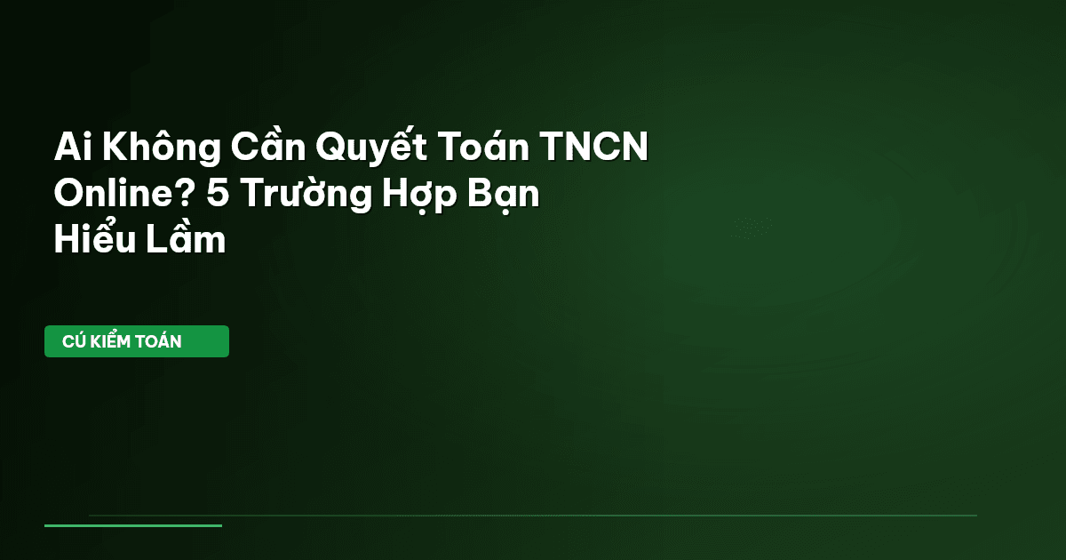 Bài viết này sẽ "soi kỹ từng con số", chỉ ra 5 trường hợp cụ thể bạn không cần quyết toán TNCN online theo đúng quy định hiện hành. Chúng ta sẽ cùng giải mã những "điểm mù" mà người nộp thuế thường gặp phải, giúp bạn tự tin hơn trong việc quản lý nghĩa vụ thuế của mình. Hãy cùng Cú Kiểm Toán tìm hiểu ngay!