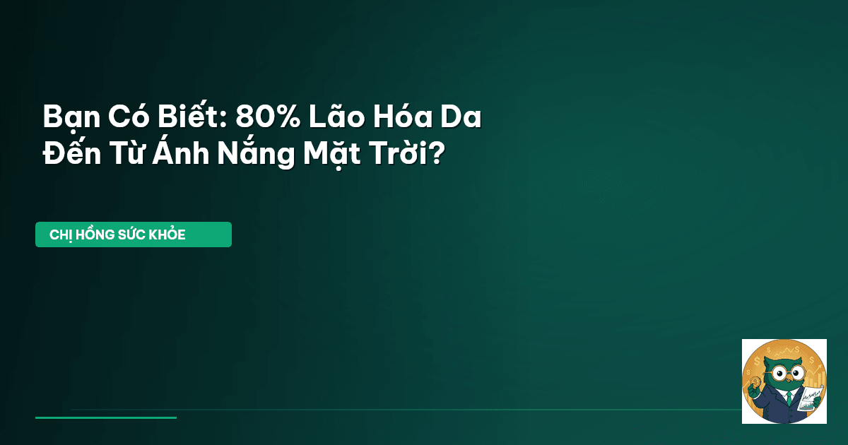 ⏱️ 15 phút đọc · 2832 từ Chào bạn, Chị Hồng Sức Khỏe đây! Bạn có biết: 80% dấu hiệu lão hóa da đến từ ánh nắng mặt trời? Bạn có biết, theo thống kê của nhiều tổ chức da liễu uy tín trên thế giới, một con số đáng kinh ngạc là khoảng 80% các dấu hiệu lão hóa da mà chúng ta nhìn thấy hàng ngày như nếp nhăn, vết chân chim, đồi mồi, hay da chảy xệ đều có nguyên nhân sâu xa từ việc tiếp xúc với ánh nắng mặt trời? Đúng vậy, không phải chỉ do tuổi tác đâu, mà chính là "kẻ thù thầm lặng" tia UV! Ở Việt N…