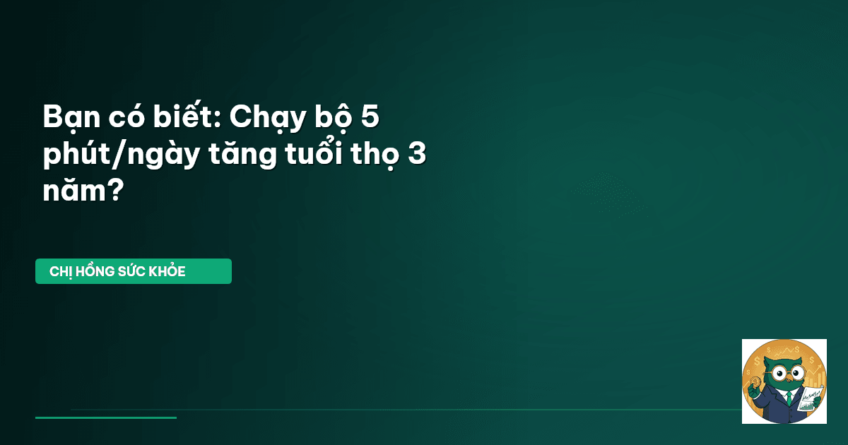 Hôm nay, Chị Hồng muốn trò chuyện với các em về một điều đơn giản nhưng vô cùng mạnh mẽ: chạy bộ. Nghe đến chạy bộ, nhiều người sẽ nghĩ ngay đến những vận động viên chuyên nghiệp hay những người chạy marathon, nhưng không phải vậy đâu nhé. Chị Hồng sẽ tiết lộ một sự thật bất ngờ: bạn không cần phải chạy hàng chục kilomet mỗi ngày để kéo dài tuổi thọ. Chỉ với 5-10 phút chạy bộ nhẹ nhàng mỗi ngày, bạn đã có thể làm được điều đó rồi!