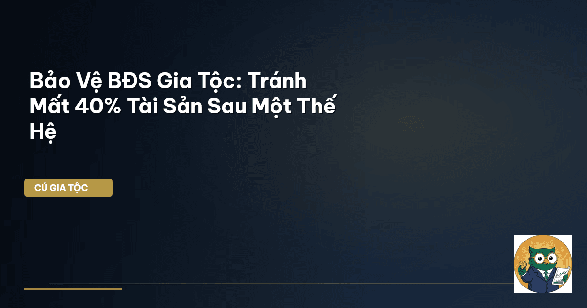 ⏱️ 16 phút đọc · 3070 từ Giới Thiệu: Nỗi Lo Mất Mát Bất Động Sản Gia Tộc Sau Một Thế Hệ Ông bà ta thường nói, "Đất đai là của để dành, là mồ hôi nước mắt cha ông để lại". Trong bối cảnh Việt Nam, bất động sản (BĐS) không chỉ là tài sản đơn thuần mà còn là biểu tượng của gia thế, của sự thịnh vượng và là "đất lành" để con cháu an cư lập nghiệp. Thế nhưng, Cú Thông Thái đã chứng kiến không ít gia đình, dù sở hữu khối BĐS khổng lồ trị giá hàng trăm, thậm chí hàng nghìn tỷ đồng, lại chứng kiến sự su…