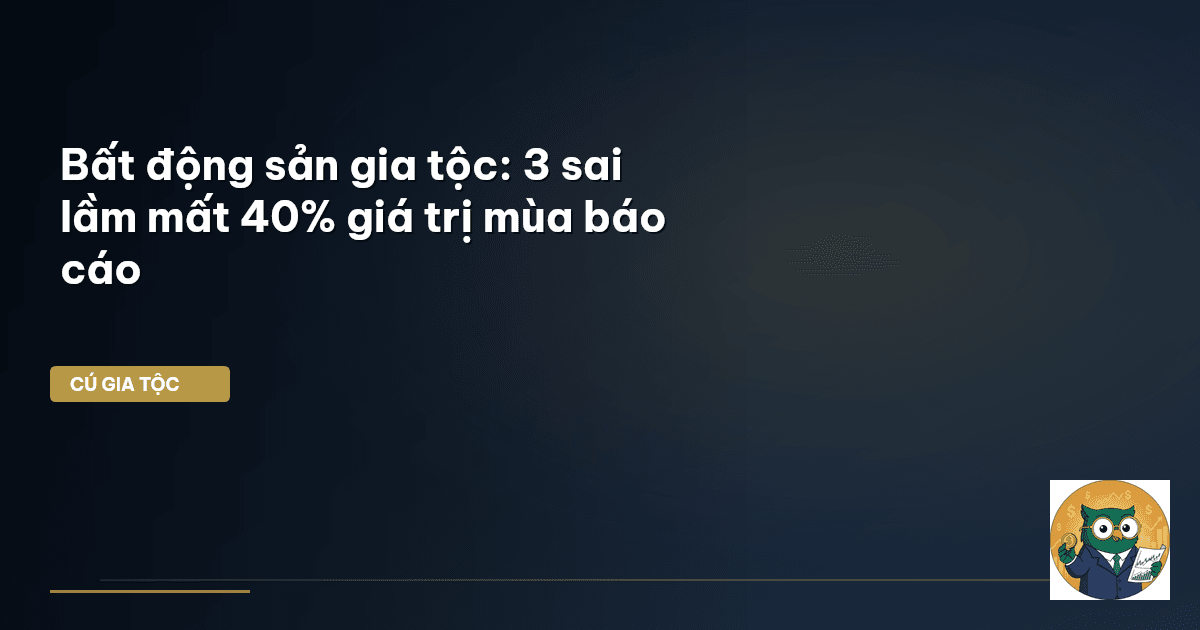⏱️ 15 phút đọc · 2966 từ Giới Thiệu: Ông Bà Để Lại Gia Sản, Con Cháu Mất Gần Nửa Vì Không Hiểu Báo Cáo Tài Chính Ông bà ta thường dặn dò: "Tấc đất tấc vàng." Bất động sản (BĐS) từ bao đời nay luôn là thước đo sự giàu có, là nền tảng vững chắc cho mọi gia tộc Việt. Nó không chỉ là tài sản vật chất đơn thuần, mà còn là giá trị tinh thần, là di sản của bao thế hệ. Nhưng Cú Thông Thái nhận thấy, rất nhiều gia đình Việt Nam đang đối mặt với một nghịch lý: Tài sản tích lũy trăm năm có thể hao hụt đáng…