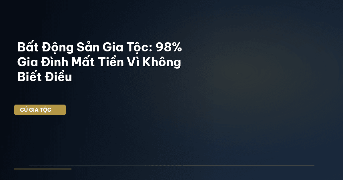 Bất Động Sản Gia Tộc: 98% Gia Đình Mất Tiền Vì Không Biết Điều
