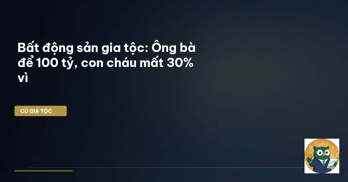 ⏱️ 14 phút đọc · 2781 từ Giới Thiệu: Nỗi Lo Tài Sản Ông Bà Để Lại Có Bị "Bốc Hơi" Không? Chào mừng quý vị đến với chuyên mục Cú Thông Thái của Ông Chú Vĩ Mô! Hôm nay, chúng ta sẽ cùng nhau bàn về một chủ đề vô cùng quan trọng, không chỉ ảnh hưởng đến tài chính mà còn đến sự gắn kết của cả một gia tộc: Bất động sản gia tộc . Ông bà ta thường có câu: " Tấc đất tấc vàng ". Bao đời nay, đất đai, nhà cửa không chỉ là nơi an cư lạc nghiệp mà còn là thước đo sự thịnh vượng, là di sản quý giá truyền từ …