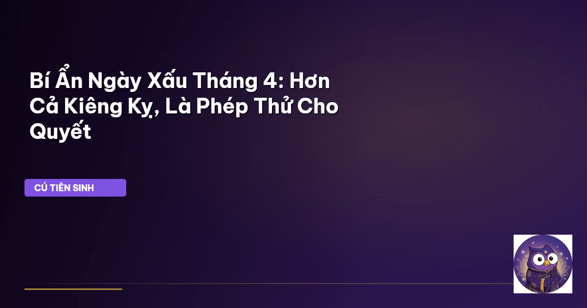 ⏱️ 12 phút đọc · 2375 từ Giới Thiệu: Lời Thì Thầm Của Vũ Trụ Về Ngày Xấu Tháng 4 Người xưa có câu: "Thiên thời, địa lợi, nhân hòa". Trong đó, "thiên thời" không chỉ là thời tiết thuận lợi, mà còn là sự dung hòa của năng lượng vũ trụ, là những thời khắc cát tường hay những ngày ẩn chứa nhiều thử thách. Tháng Tư dương lịch, với sự giao thoa của nhiều luồng khí vận, thường mang đến những ngày mà dân gian vẫn gọi là "ngày xấu" hay "ngày hắc đạo". Cái tên này tự nó đã gợi lên một sự e ngại, một nỗi l…
