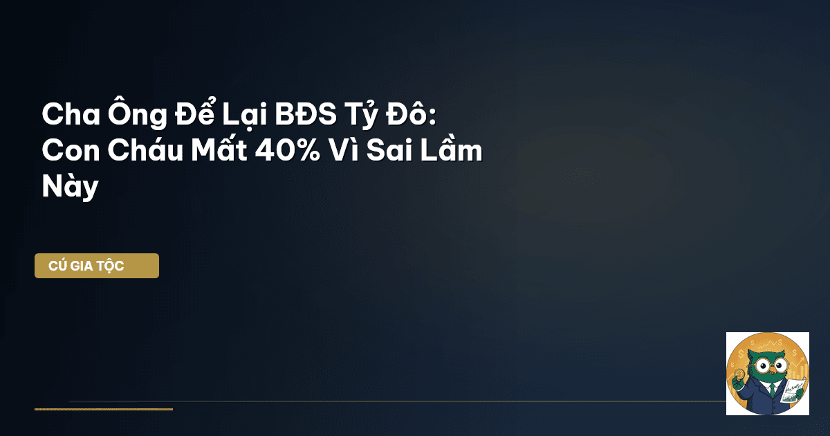 ⏱️ 15 phút đọc · 2940 từ Giới Thiệu: Khi Di Sản Tổ Tiên Trở Thành Gánh Nặng Ông bà cha mẹ để lại cho con cháu một miếng đất, một căn nhà mặt phố – đó không chỉ là tài sản vật chất mà còn là cả một gia tài tình cảm, là niềm tự hào của một gia tộc. Thế nhưng, Cú Thông Thái đã chứng kiến không ít những tình huống đau lòng: di sản ấy, thay vì là bệ phóng cho các thế hệ sau, lại trở thành nguồn cơn của mâu thuẫn , xích mích thậm chí là suy giảm tài chính trầm trọng. Đặc biệt là khi khối bất động sản …