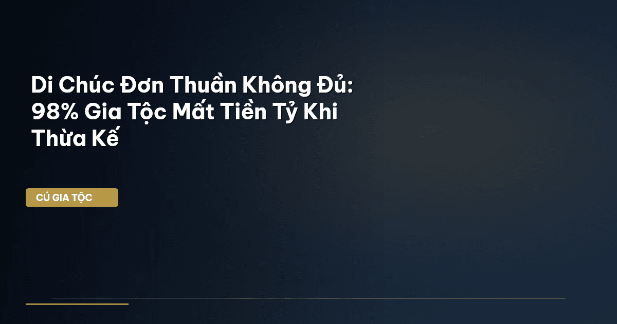 ⏱️ 13 phút đọc · 2554 từ Giới Thiệu: Di Chúc – Tấm Khiên Mỏng Manh Trước Sóng Gió Gia Tộc Ông bà chúng ta, với bao năm tháng tảo tần, dành cả đời vun đắp nên cơ nghiệp. Một căn nhà mặt phố, vài mảnh đất giá trị, hay một khoản tiết kiệm kếch xù, tất cả đều là mồ hôi nước mắt được dành dụm. Thế nhưng, Cú Thông Thái nhận thấy rằng, nhiều gia tộc Việt Nam đang đối mặt với một thực tế đáng buồn: tài sản tích lũy cả đời có thể hao hụt đáng kể , thậm chí tan biến chỉ sau một thế hệ. Nguyên nhân không p…