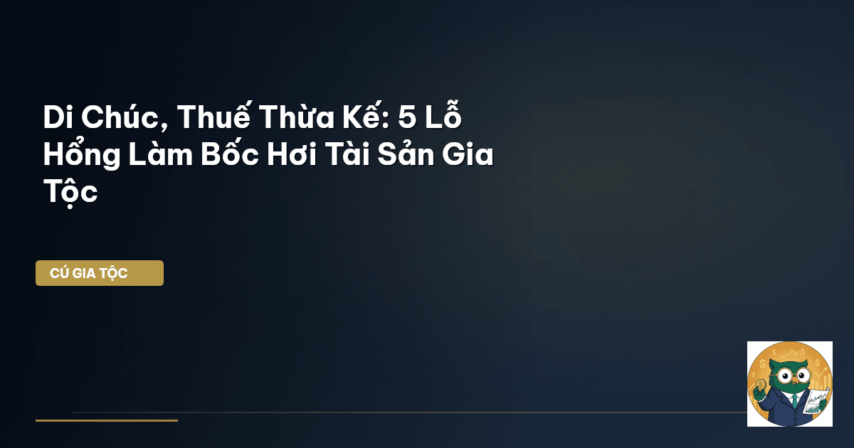 ⏱️ 17 phút đọc · 3374 từ Giới Thiệu: Di Chúc – Viên Đạn Bạc Hay Bẫy Rập Thừa Kế? Trong văn hóa Việt Nam, chuyện lập di chúc thường được xem là điều nhạy cảm, chỉ nghĩ đến khi tuổi đã xế chiều hoặc bệnh tật hiểm nghèo. Nhưng Cú Thông Thái xin chia sẻ một sự thật: suy nghĩ này đang khiến hàng ngàn gia tộc Việt đối mặt với nguy cơ mất mát tài sản đáng kể , không chỉ là tiền bạc mà còn là sự đoàn kết, hòa thuận gia đình. Ông bà để lại 5 tỷ, nhưng con cháu có thể mất 40% giá trị thực vì những lỗ hổng…