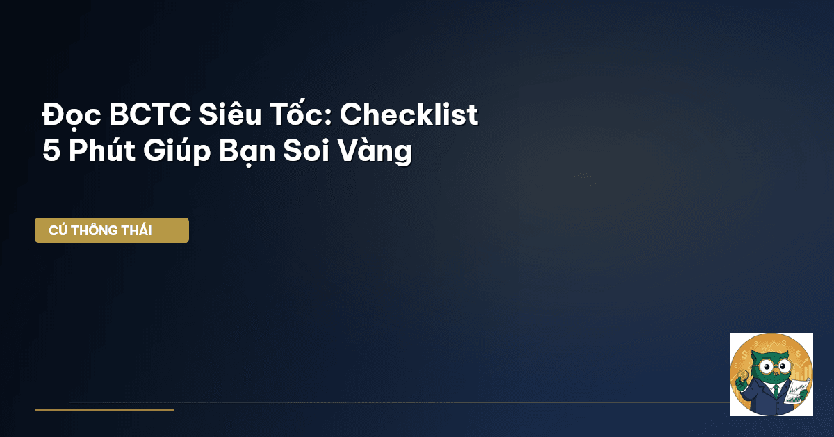 ⏱️ 12 phút đọc · 2264 từ Giới Thiệu: Đừng Để BCTC "Hù Dọa" Bạn! Ông Chú Cú Thông Thái đã thấy quá nhiều F0, thậm chí cả những nhà đầu tư 'có tuổi' hơn, bối rối trước núi giấy tờ mang tên Báo cáo tài chính (BCTC). Nhìn vào đó, nhiều người cảm thấy như đang lạc vào một mê cung số liệu, không biết bắt đầu từ đâu. Phải chăng BCTC chỉ dành cho các quỹ lớn, cho những tay 'lão làng' có bằng cấp tài chính lủng lẳng? Hoàn toàn không phải vậy! Trong thị trường biến động không ngừng, thời gian là vàng bạc.…