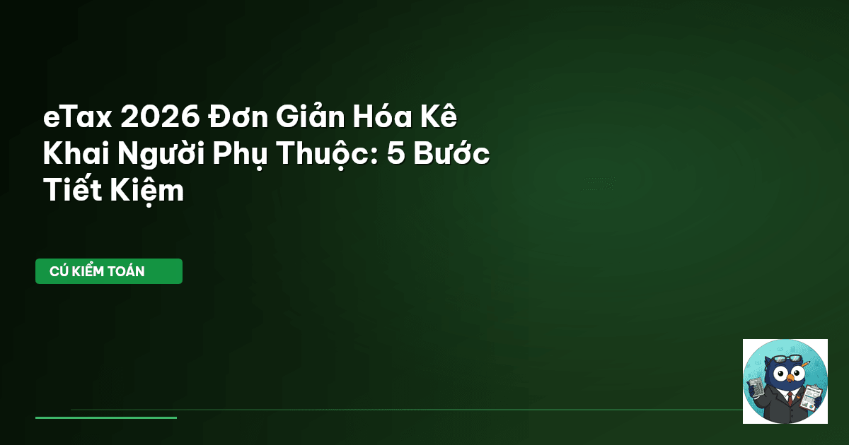 Bài viết này sẽ soi kỹ từng bước kê khai người phụ thuộc online qua eTax 2026. Bạn sẽ thấy, chỉ vài click chuột là quyền lợi của mình được đảm bảo. Đừng để những khoản tiền tiết kiệm được "bay hơi" chỉ vì thiếu thông tin hoặc ngại làm thủ tục. Cú Kiểm Toán sẽ hướng dẫn bạn từ A đến Z, đảm bảo bạn không bỏ lỡ bất kỳ điều gì.