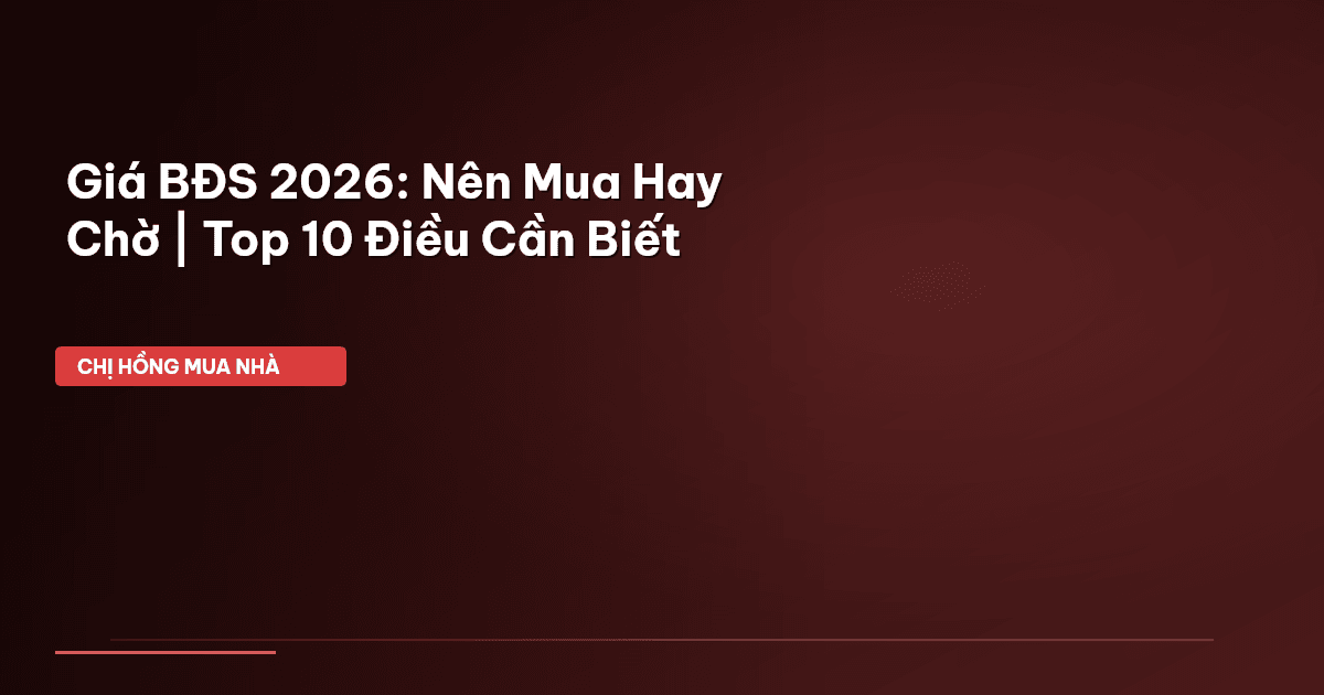 ⏱️ 11 phút đọc · 2189 từ Giới Thiệu: 2026 – Vô Vàn Câu Hỏi Cho Gia Đình Mình Chào các mẹ bỉm sữa, các gia đình thân yêu của Chị Hồng! Dạo này, Chị Hồng nhận được vô vàn tin nhắn hỏi về chuyện mua nhà năm 2026. Nào là: "Chị ơi, lương em với chồng mỗi tháng 30 triệu, tích góp được 500 triệu rồi, giờ nên mua nhà luôn hay chờ đến 2026 để giá tốt hơn?" Hay "BDS đang trầm lắng, liệu năm 2026 có 'bùng nổ' không chị? Em sợ lỡ tàu quá!" . À mà thật ra, cái tâm lý chờ đợi hay lao vào m…