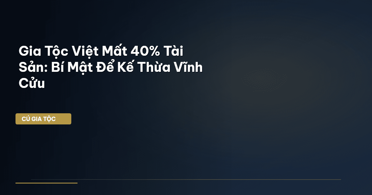 ⏱️ 15 phút đọc · 2870 từ Giới Thiệu: Ông Bà Để Lại 5 Tỷ — Con Cháu Mất 40% Vì Sao? Ông bà mình cả đời lam lũ, tích cóp từng đồng, dồn hết tâm huyết xây dựng cơ nghiệp. Thế nhưng, nhiều gia đình Việt Nam đang đối mặt với một thực tế phũ phàng: tài sản quý giá cha ông để lại có thể hao hụt đến 40%, thậm chí hơn nữa , chỉ trong một thế hệ. Con số này không chỉ là những tranh chấp xô xát trên bàn ăn, mà còn là các khoản thuế không lường trước, chi phí pháp lý kéo dài, hay tệ hơn là sự lãng phí và ph…
