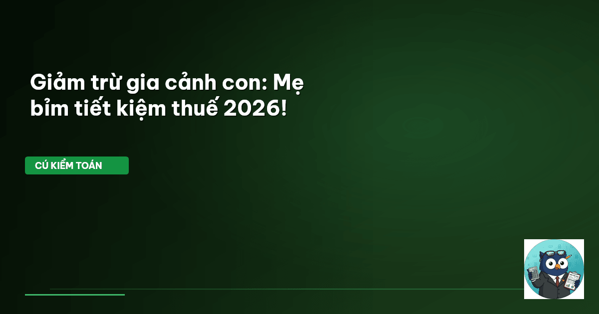 ⏱️ 11 phút đọc · 2099 từ Giới Thiệu: Đừng Để Tiền Thuế Đội Nón Ra Đi, Mẹ Bỉm! Mỗi tháng, bạn nhận lương. Nhưng lương bạn nhận được, đã trừ đúng, trừ đủ các khoản giảm trừ chưa? Đặc biệt là khoản giảm trừ gia cảnh cho con cái – một "lá chắn" tài chính quan trọng mà nhiều mẹ bỉm sữa thường xuyên bỏ sót hoặc chưa khai thác triệt để. Giữa bối cảnh giá cả biến động liên tục, từng khoản tiết kiệm nhỏ đều quý giá. Ví dụ, theo dữ liệu từ hệ thống Cú Thông Thái ngày 2026-04-15, giá xăng RON 95 tại Việt N…