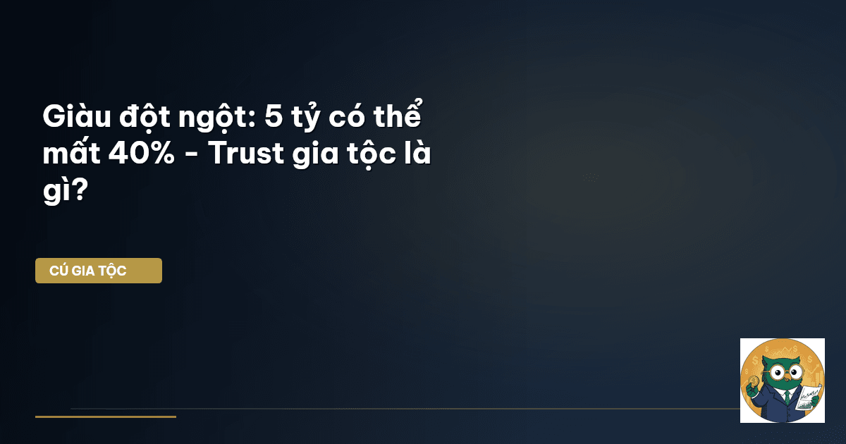 ⏱️ 14 phút đọc · 2679 từ Giới Thiệu: Hội Chứng Giàu Đột Ngột – Cơ Hội Hay Cạm Bẫy Liên Thế Hệ? Ông bà để lại 5 tỷ, nghe có vẻ là một món quà trời cho, một khởi đầu thuận lợi cho con cháu. Nhưng Cú Thông Thái nhận thấy: không ít gia đình Việt đang đứng trước nguy cơ mất trắng đến 40% hoặc hơn số tài sản ấy chỉ vì không biết cách quản lý và bảo vệ đúng đắn . Đây chính là một phần của cái mà giới tài chính quốc tế gọi là "Hội chứng giàu đột ngột" – Sudden Wealth Syndrome. Khi tiền bạc đến quá nhanh…