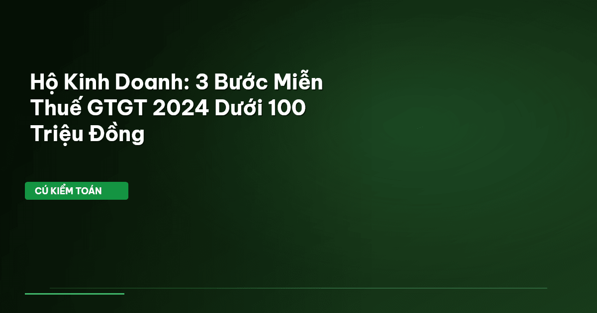 ⏱️ 12 phút đọc · 2294 từ Giới Thiệu: 3 Bước Hiểu Rõ Miễn Thuế GTGT Cho Hộ Kinh Doanh Hàng trăm ngàn hộ kinh doanh cá thể tại Việt Nam đang vật lộn với câu hỏi: Liệu mình có phải khai báo thuế GTGT không? Năm 2024, câu trả lời vẫn rõ ràng như ban ngày, nhưng nhiều chủ hộ vẫn mắc kẹt trong mớ bòng bong thủ tục. Cú Kiểm Toán đã soi kỹ: doanh thu dưới 100 triệu đồng/năm , bạn gần như được thở phào. Quy định này, cụ thể là tại Thông tư số 40/2021/TT-BTC, chính là phao cứu sinh cho các chủ hộ kinh doa…