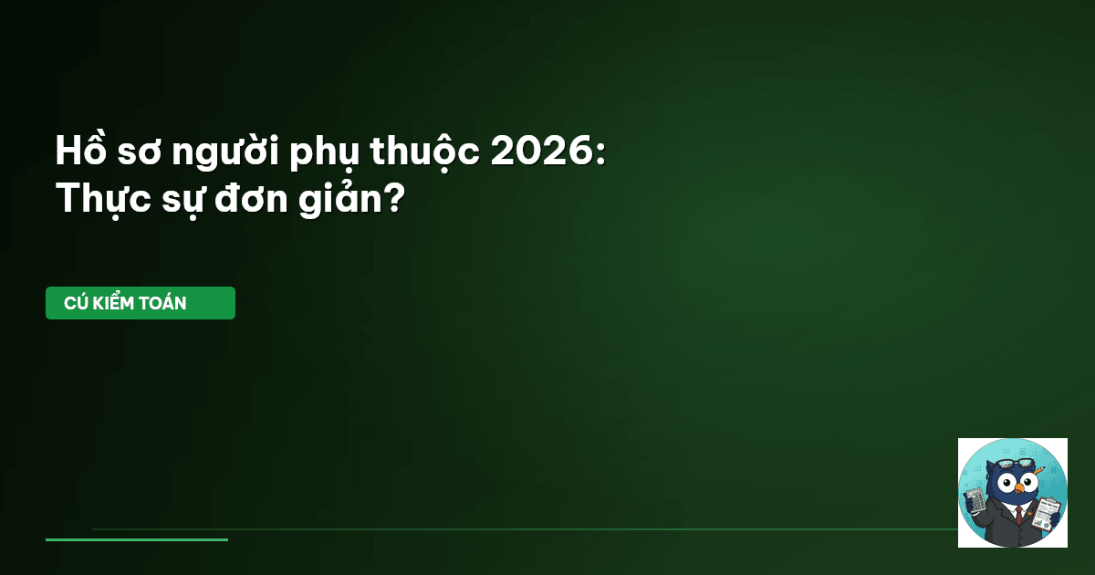 ⏱️ 11 phút đọc · 2146 từ Giới Thiệu: Đơn Giản Hóa Giảm Trừ Gia Cảnh – Lợi Hay Hại? Năm 2026 đang đến gần, và một trong những chủ đề "nóng" nhất trong giới tài chính là việc đơn giản hóa hồ sơ chứng minh người phụ thuộc cho mục đích giảm trừ gia cảnh thuế Thu nhập cá nhân (TNCN). Ai cũng muốn thủ tục nhanh gọn. Nhưng "đơn giản hóa" có thực sự làm mọi thứ dễ dàng hơn, hay chỉ là chuyển đổi gánh nặng? Cú Kiểm Toán nhận thấy, việc cập nhật quy định này rất quan trọng. Bởi vì, giảm trừ gia cảnh trực …