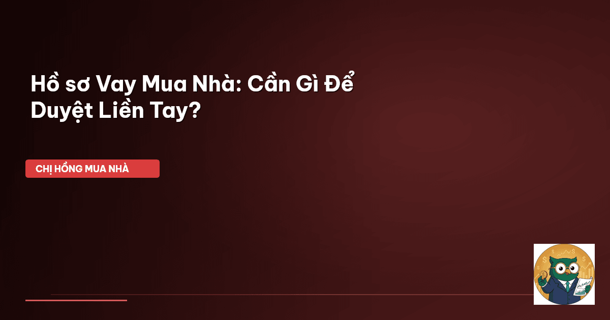 ⏱️ 13 phút đọc · 2585 từ Giới Thiệu: Vay Mua Nhà — Nỗi Lo Chung Của Mấy Mẹ Bỉm? Chào mấy mẹ bỉm, các bố, các cô chú đang ấp ủ giấc mơ an cư lạc nghiệp! Chị Hồng BĐS biết thừa, cái chuyện vay mua nhà nó cứ như "núi thái sơn" đè nặng trên vai bao gia đình mình vậy. Nào là không biết chuẩn bị giấy tờ gì, rồi sợ ngân hàng làm khó, sợ không đủ điều kiện, hay sợ nhất là chờ đợi mòn mỏi rồi bị từ chối... Đúng không nè? Nhưng mấy mẹ ơi, đừng lo lắng quá nha! Chuyện vay mua nhà không hề khó như mình vẫn …