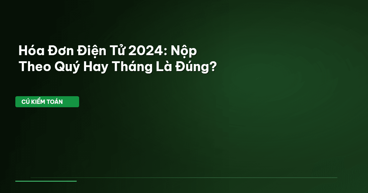 ⏱️ 10 phút đọc · 1814 từ Giới Thiệu: 2024 – Thời Hạn Nộp Tờ Khai Hóa Đơn Điện Tử Có Gì Khác? Hóa đơn điện tử (HĐĐT) không còn là khái niệm xa lạ. Nhưng với năm 2024, câu hỏi "Doanh nghiệp tôi nộp tờ khai HĐĐT theo tháng hay theo quý?" vẫn khiến nhiều kế toán viên, chủ doanh nghiệp phải đau đầu. Nhầm lẫn tần suất nộp, hoặc quên bẵng thời hạn, là kịch bản không ai muốn – nhất là khi Cú Kiểm Toán biết rõ mức phạt tài chính có thể rất "đau". Hệ thống thuế luôn cập nhật. Tuân thủ đúng hạn, đúng quy đ…