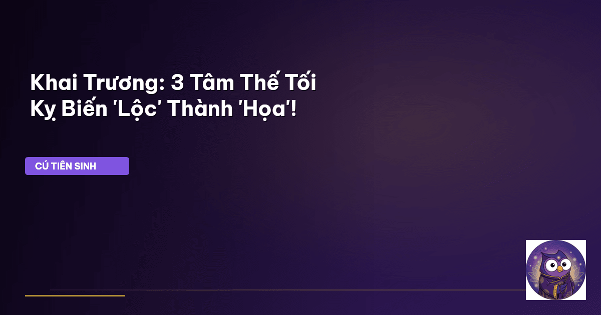 ⏱️ 12 phút đọc · 2339 từ Giới Thiệu Người xưa có câu: Vạn sự khởi đầu nan. Đối với những ai khởi sự kinh doanh, ngày khai trương không chỉ là một cột mốc quan trọng mà còn chứa đựng bao ước vọng về tài lộc hanh thông, vạn sự cát tường. Nhiều người cẩn trọng chuẩn bị lễ vật thật chu đáo, chọn ngày lành tháng tốt thật kỹ lưỡng, và đọc văn khấn thật thành tâm. Tuy nhiên, Cú Tiên Sinh nhận thấy rằng, giữa muôn vàn chuẩn bị tỉ mỉ ấy, một yếu tố cốt lõi lại thường bị bỏ quên, hoặc chỉ được coi nhẹ: đó…