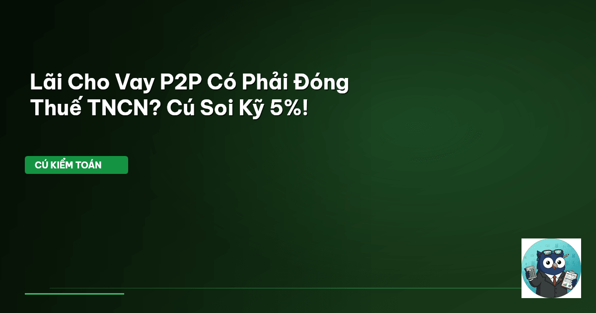 ⏱️ 12 phút đọc · 2322 từ Giới Thiệu: Lãi P2P – Lợi Nhuận Kèm Nghĩa Vụ Thuế? Thị trường cho vay ngang hàng (P2P lending) tại Việt Nam những năm gần đây đã bùng nổ, mang đến cơ hội đầu tư hấp dẫn với lãi suất tiềm năng cao hơn gửi tiết kiệm truyền thống. Tuy nhiên, nhiều nhà đầu tư cá nhân, những người tham gia vào dòng chảy tài chính này, thường bỏ qua một góc khuất quan trọng: nghĩa vụ thuế thu nhập cá nhân (TNCN) từ khoản lãi thu được. Cú Kiểm Toán nhận thấy đây là một lỗ hổng kiến thức nghiêm …