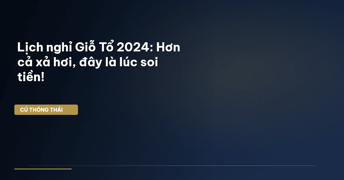 Hôm nay, chúng ta sẽ cùng Cú Thông Thái "mổ xẻ" lịch nghỉ Giỗ Tổ Hùng Vương 2024 dưới góc độ vĩ mô, xem nó ảnh hưởng thế nào đến túi tiền của bạn, và làm sao để biến kỳ nghỉ này thành cơ hội "làm giàu từ phòng khách" thay vì chỉ là một đợt "đốt tiền" vô bổ. Đừng bỏ lỡ nhé!