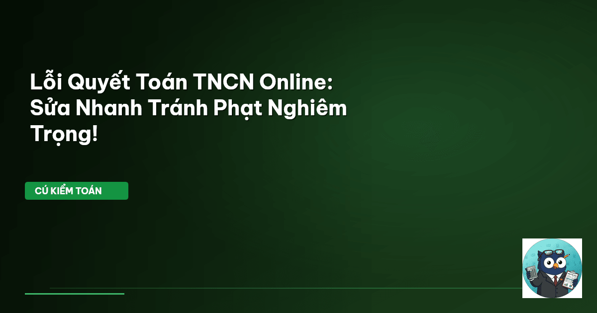 ⏱️ 11 phút đọc · 2103 từ Giới Thiệu: Sửa Lỗi Quyết Toán TNCN — Thời Gian Không Đợi Một Ai! Quyết toán thuế TNCN (Thu nhập Cá nhân) hàng năm là nghĩa vụ không thể né tránh của người lao động. Nhưng ai mà không lầm lỡ? Một con số nhập sai, một khoản giảm trừ bỏ sót, hoặc chỉ đơn giản là nhầm lẫn dữ liệu – tất cả đều có thể dẫn đến một tờ khai "có vấn đề". Cú Kiểm Toán biết rõ nỗi lo này: làm sao để sửa lỗi tờ khai quyết toán thuế TNCN online nhanh nhất, chuẩn xác nhất và quan trọng là, không dính …