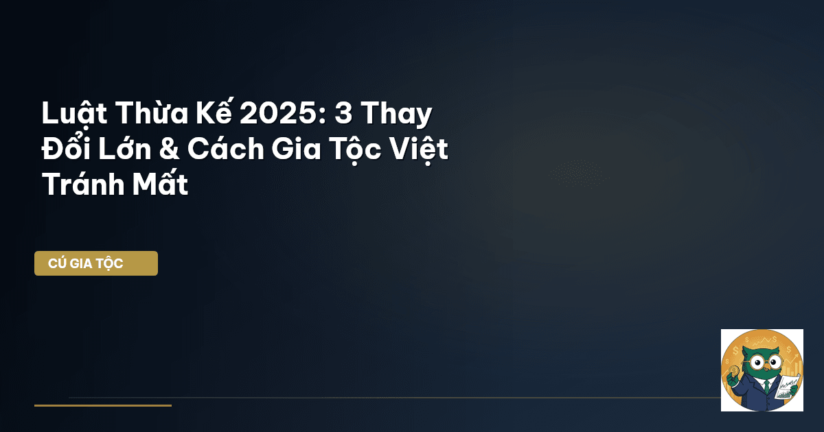 ⏱️ 15 phút đọc · 2932 từ Ông Bà Để Lại 5 Tỷ: Con Cháu Mất Gần 70% Vì Không Biết 3 Thay Đổi Lớn Luật Thừa Kế 2025? Kính thưa các quý vị và gia tộc Cú Thông Thái thân mến! Trong nền văn hóa Việt Nam, tài sản không chỉ là của cải vật chất, mà còn là linh hồn, là mồ hôi nước mắt của nhiều thế hệ. Nhưng ông chú thấy, nhiều gia đình Việt Nam đang đối mặt với một thực tế phũ phàng: những di sản quý giá, từ mảnh đất vàng ở TP.HCM đến khối tài sản tích lũy cả đời, có thể bị thất thoát, thậm chí là "tan b…
