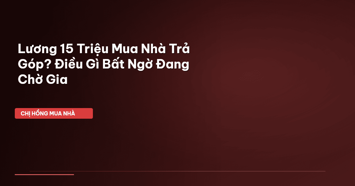 ⏱️ 12 phút đọc · 2238 từ Giới Thiệu: Lương 15 Triệu Mua Nhà Trả Góp — Giấc Mơ Hay Hiện Thực? Chào các mẹ bỉm sữa, các bố trẻ và những ai đang ấp ủ giấc mơ an cư lạc nghiệp! Chị Hồng BĐS biết rằng, với nhiều gia đình trẻ, câu hỏi "Lương 15 triệu có mua được nhà trả góp không?" cứ lởn vởn mãi trong đầu. Nhất là khi nhìn giá nhà cứ tăng vù vù, còn lương thì... cứ bình bình vậy. Cảm giác bất lực, chán nản là điều khó tránh khỏi. Nhưng các mẹ, các bố ơi, đừng vội buông xuôi nhé! Cuộc sống này vốn dĩ …